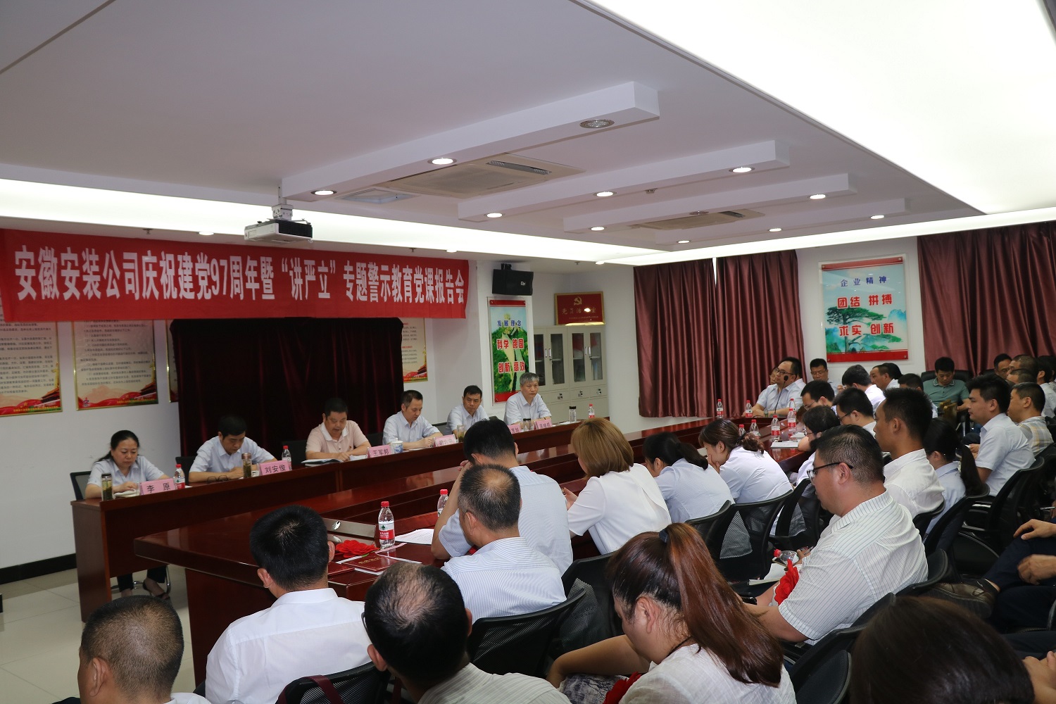 為慶祝中國共產(chǎn)黨建黨97周年,扎實開展好“講忠誠、嚴紀律、立政德”專題警示教育,推動全面從嚴治黨向縱深發(fā)展。7月4日下午,安徽安裝公司黨委召開慶祝建黨97周年暨“講嚴立”專題警示教育黨課報告會。公司黨委書記、副總經(jīng)理胡六中作了題為《講忠誠 嚴紀律 立政德 做新時代合格共產(chǎn)黨員》的黨課報告。公司董事長、總經(jīng)理、黨委副書記王軍邦主持會議并宣貫集團公司慶祝建黨97周年暨黨的建設(shè)工作會議精神。黨委委員、副總經(jīng)理劉安俊宣讀表彰決定。公司領(lǐng)導(dǎo)班子成員、機關(guān)部門正副職、機關(guān)在崗黨員、分公司領(lǐng)導(dǎo)班子成員和受表彰的先進基層黨組織、優(yōu)秀共產(chǎn)黨員和優(yōu)秀黨務(wù)工作者共70余人參加會議。