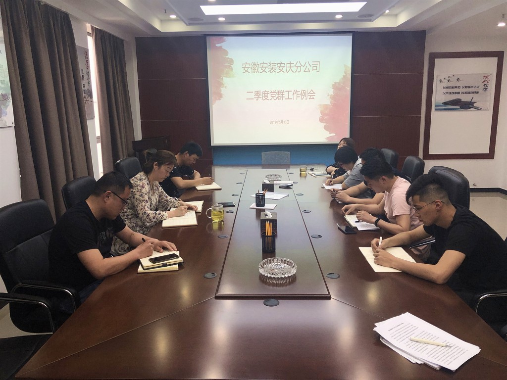 5月13日下午,安慶分公司召開第二季度黨群工作例會(huì),分公司黨群工作領(lǐng)導(dǎo)、部門負(fù)責(zé)人及相關(guān)工作人員參加了會(huì)議,會(huì)議由綜合辦主任董玉娟主持。