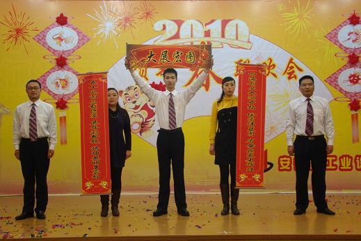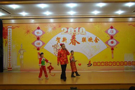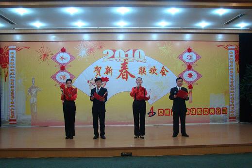 公司王軍邦總經(jīng)理代表公司黨政領(lǐng)導(dǎo)班子致新年賀詞,感謝一年來上級領(lǐng)導(dǎo)的大力支持和關(guān)懷,感謝全體員工的辛勤付出和熱愛。伴隨著優(yōu)美的旋律,聯(lián)歡會在舞蹈《好運來》中正式拉開序幕,火紅的扇子,舞出了我們共同的期盼;詩朗誦《承諾》,聲情并茂、鏗鏘有力的述說了省安三年來發(fā)生的巨大變化和取得的輝煌成績,博得了在場觀眾的陣陣掌聲。安慶分公司的戲劇小品《比翼雙飛》與合肥項目部的男聲獨唱《恭喜發(fā)財》同獲一等獎,蚌埠分公司的說唱《三載巨變展新貌》和經(jīng)理辦的小品《昨天今天 明天》同獲二等獎。